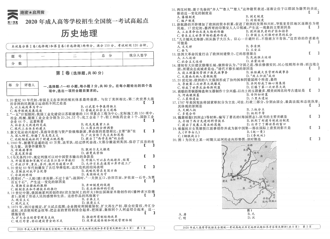 2020年湖南成考高升本(文科类)历史地理考试真题及答案解析
